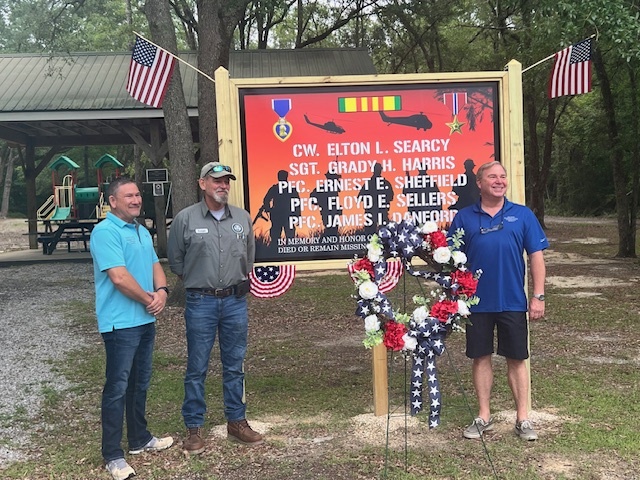 Story by: BOCC StaffThe Washington County Board of County Commissioners' Parks and Recreation Director, George Swauger, organized a Veteran Memorial Sign Dedication Ceremony at St. Joseph Park. This dedication ceremony took place the morning of May 20, 2024, where the Board County Commissioners Vice-Chairman, David A. Corbin, and Commissioner Alan Bush were present. Others present were members of AMVETs Veterans Post 007 Chipley, County representatives, and citizens.